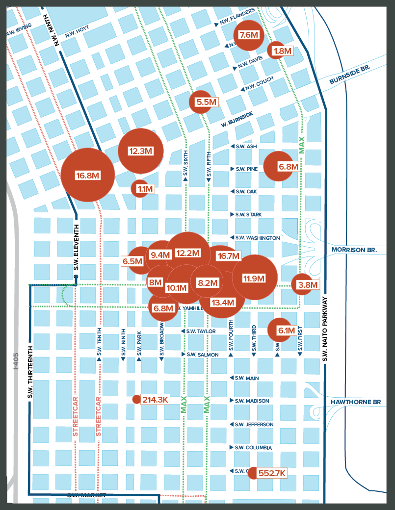 We are seeing foot traffic particularly high in the Downtown core around Pioneer Place Mall, Pioneer Courthouse Square, and on Broadway near Nordstrom and Columbia Sportswear.  These patterns are very reflective of pre-pandemic activity.