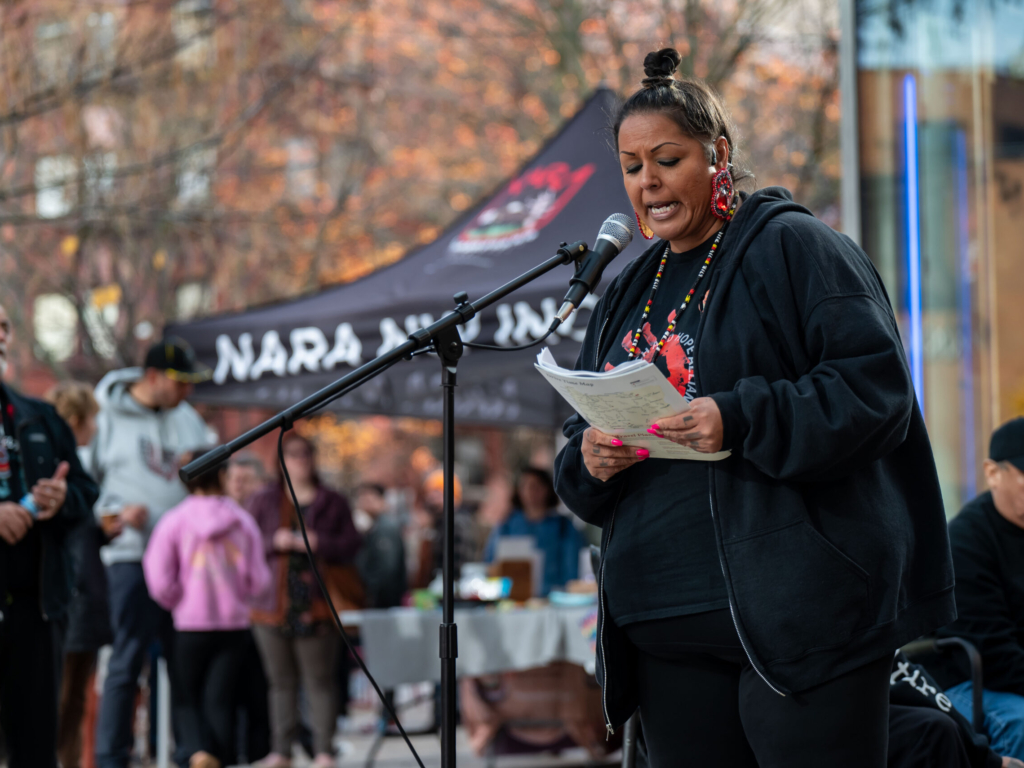 Community partners from a variety of organizations hosted booths at the event to share information, resources, and interactive activities. These partners included NARA NW (Native American Rehabilitation Association), NAYA Family Center, the Multnomah County Library, and the Missing Murdered Indigenous Women (MMIW) Search and Hope Alliance.