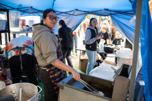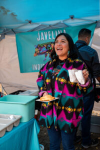 This year’s Frybread Fest featured four frybread vendors who offered free frybread to the first 200 visitors. Food vendors also sold Native coffee and lemonade from Warm Springs to accompany the frybread. Twenty artists and entrepreneurs from the Portland Indigenous Marketplace sold items including beadwork, regalia, art, jewelry, and more.