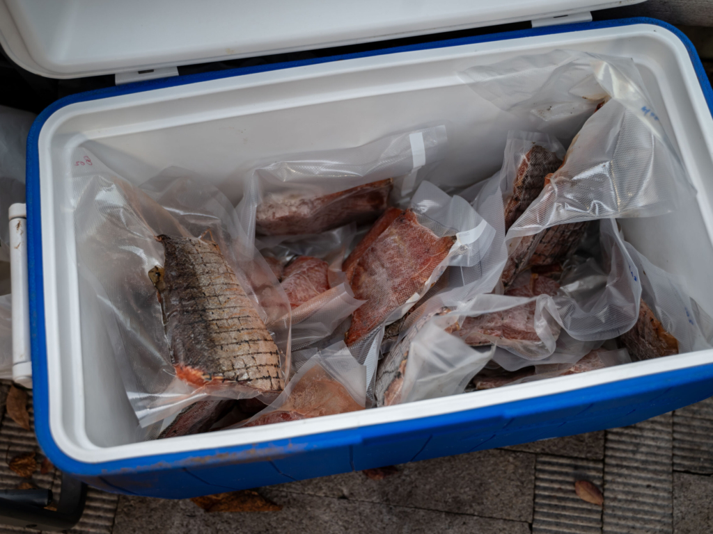 - Traveling from the Warm Springs Reservation, Whitney Jackson (Wílaps Ayat / Sturgeon Woman) shared her deep knowledge of traditional lifeways along the Columbia River–from fishing for salmon and sturgeon to preserving traditional foods. She showed her award-winning wind-dried salmon and eel and shared about her work teaching and revitalizing the Ichishkíin language at the Warm Springs Language School.